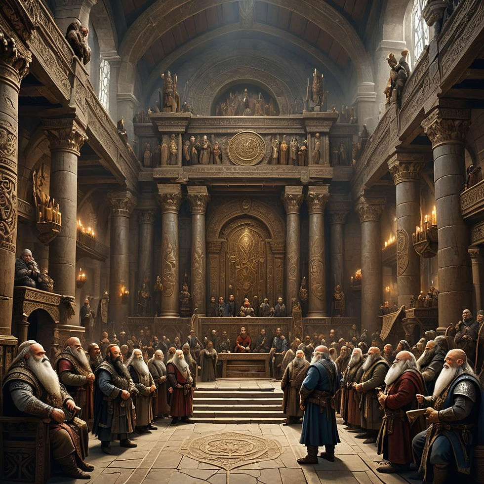The Council of Long Beards has been the cornerstone of governance in the Dwarven Alliance since its inception. Formed during the Great Unification, when the scattered dwarven clans came together to face common threats and embrace mutual prosperity, the council was established to ensure that the voices of all clans were heard and represented in the decision-making process. The council is composed of the eldest and wisest dwarves from each clan, both male and female, who are chosen based on their experience, wisdom, and contributions to dwarven society.